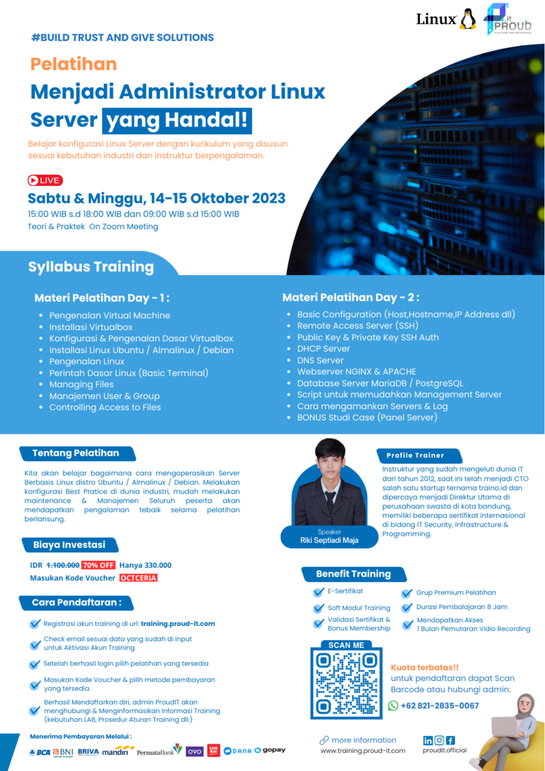 Saya ingin mengungkapkan apresiasi saya atas pelatihan yang saya ikuti. Pelatihan ini telah memberikan saya pemahaman yang baik tentang server Linux